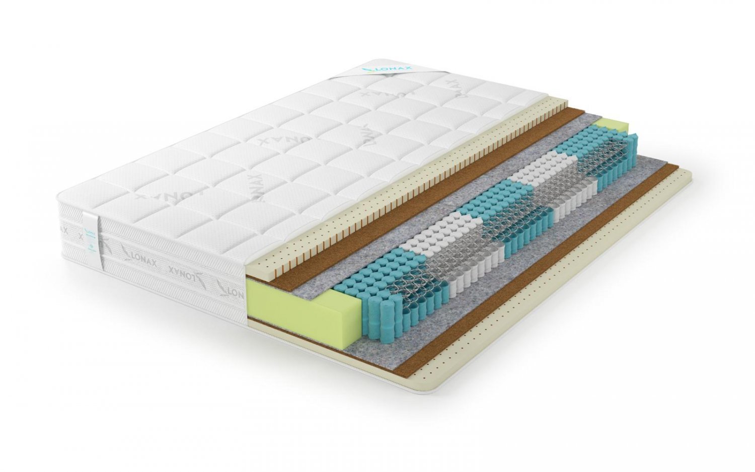 СоставТермовойлок, Кокосовая плита - Coconut, Чехол Люкс, 5-и зональный пружинный блок S1000 (Anatomic multizone), Lonax - латекс