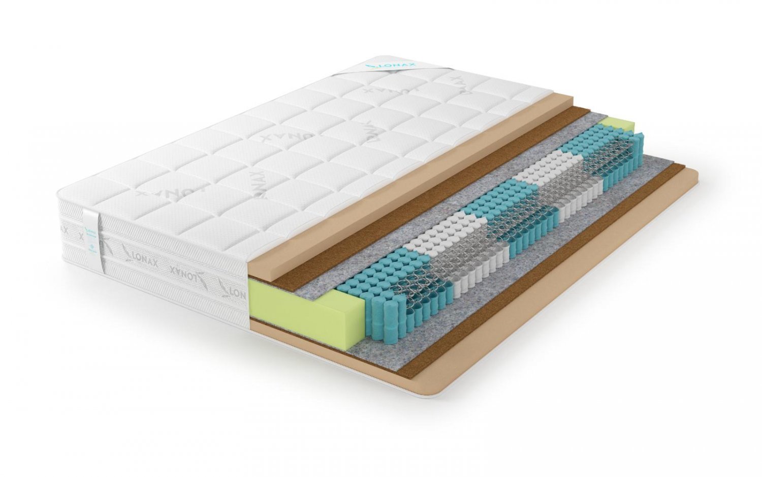 СоставТермовойлок, Кокосовая плита - Coconut, Меморикс, Чехол Люкс, 5-и зональный пружинный блок S1000 (Anatomic multizone)