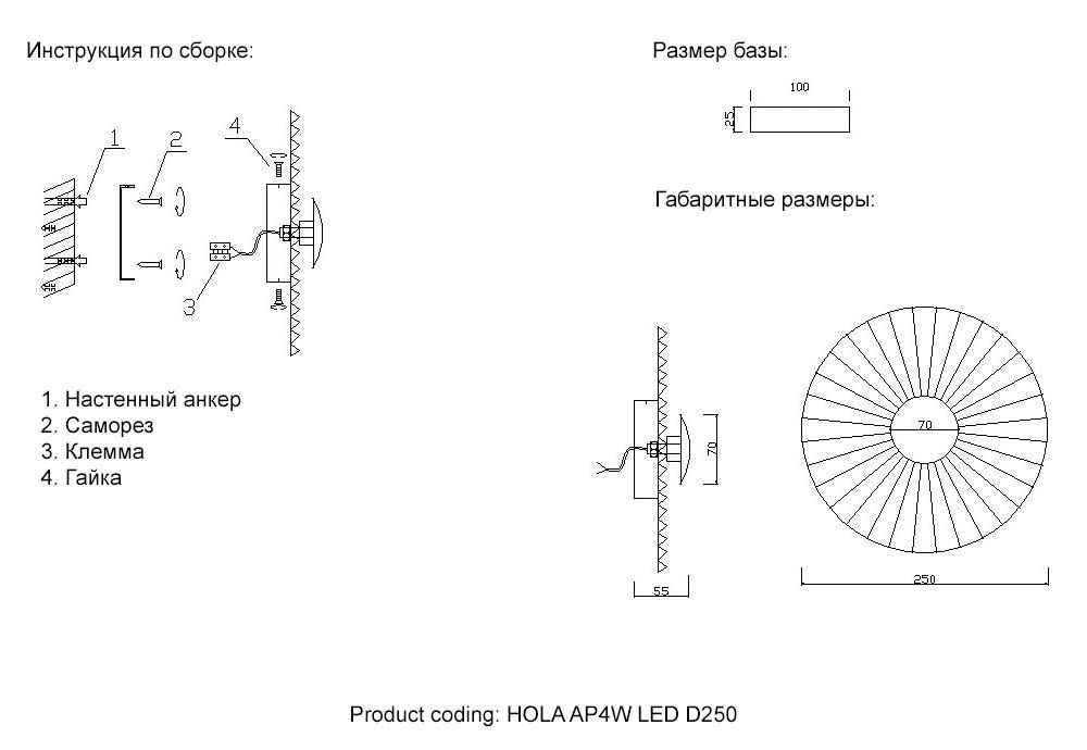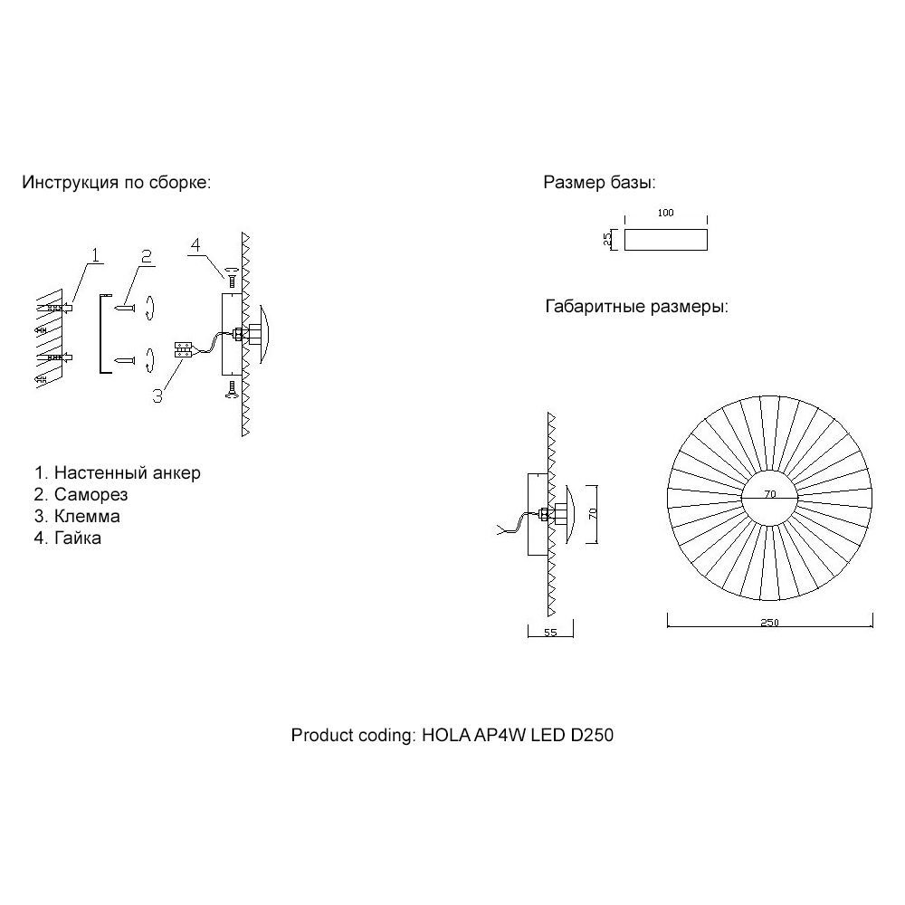 Артикул Hola AP4W Led D250
