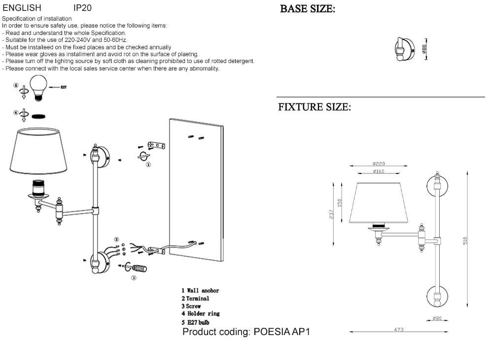 Общая форма для Бра и Настенные светильников с любым количеством рожковОбщий плафон / абажур