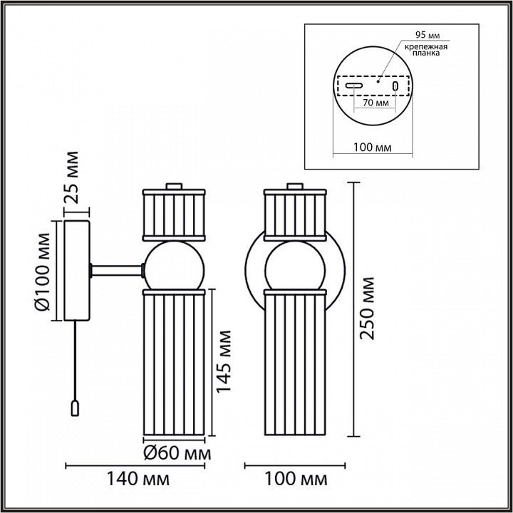 Общая форма для Бра и Настенные светильников с любым количеством рожковОбщий плафон / абажур