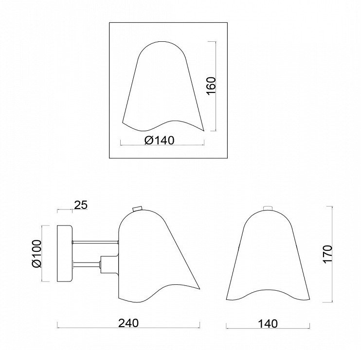 Общая форма для Бра и Настенные светильников с любым количеством рожковОбщий плафон / абажур
