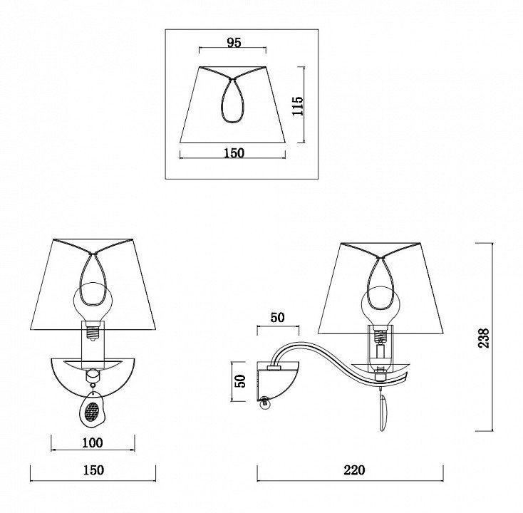 Общая форма для Бра и Настенные светильников с любым количеством рожковОбщий плафон / абажур