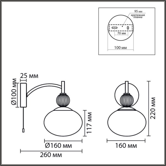 Наличие выключателя, диммера или пульта ДУвыключатель-шнурок, выключатель