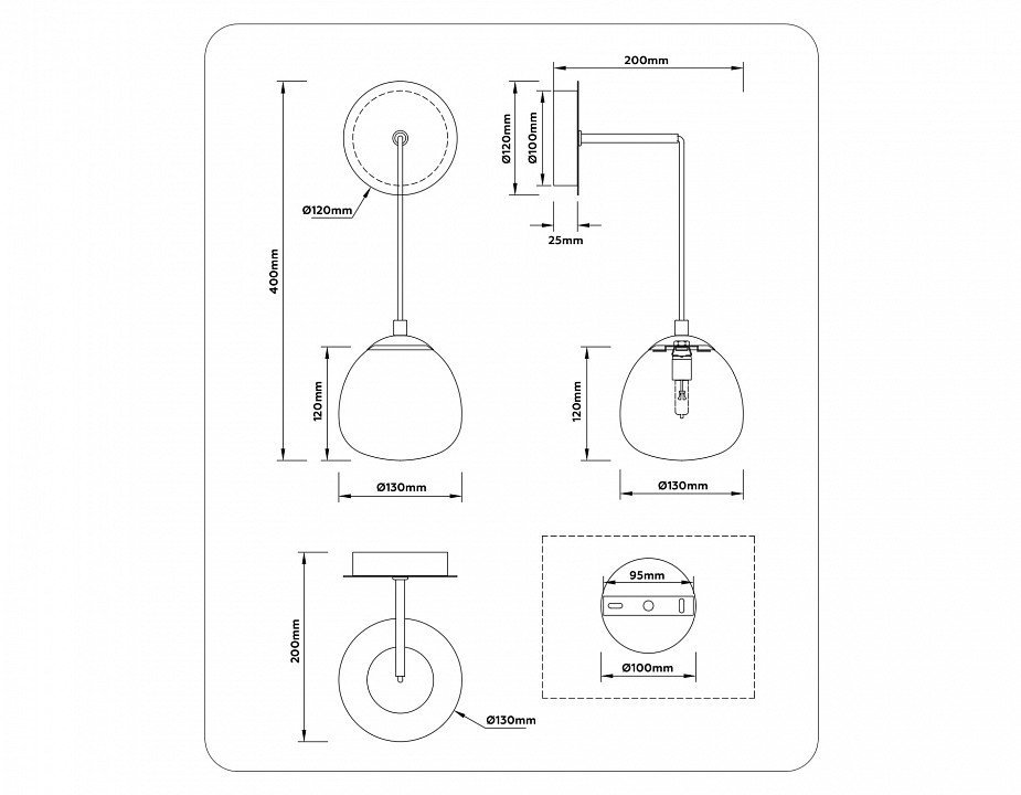 Общая форма для Бра и Настенные светильников с любым количеством рожковОбщий плафон / абажур