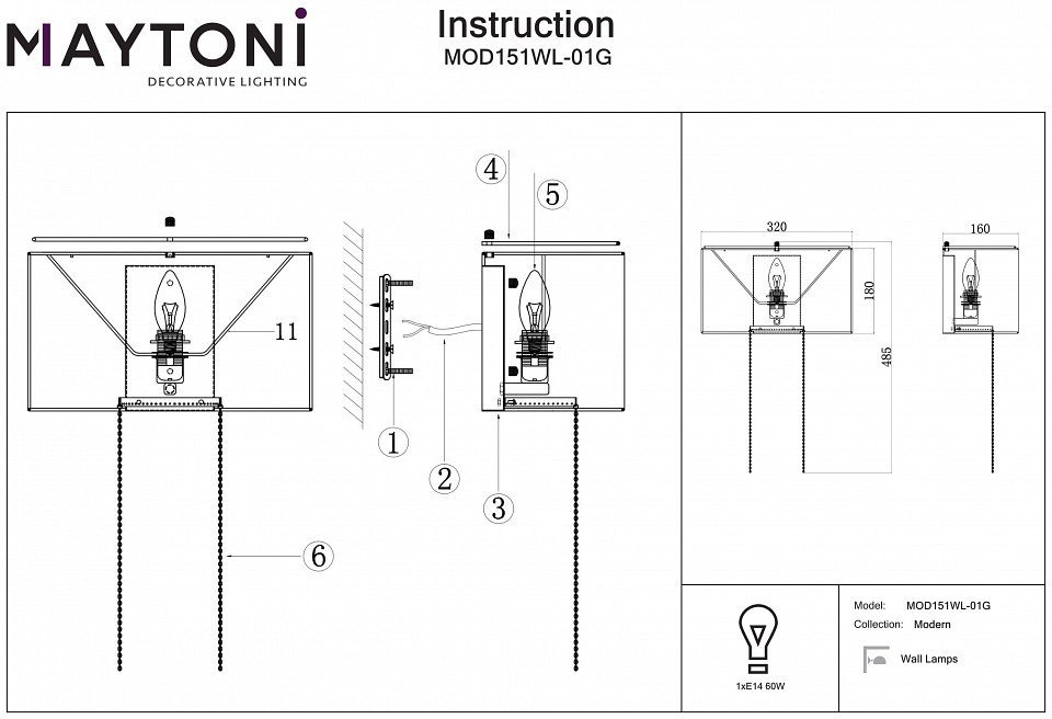 Станьте первым, кто оставит отзыв о товаре Бра Maytoni Impressive MOD151WL-01G