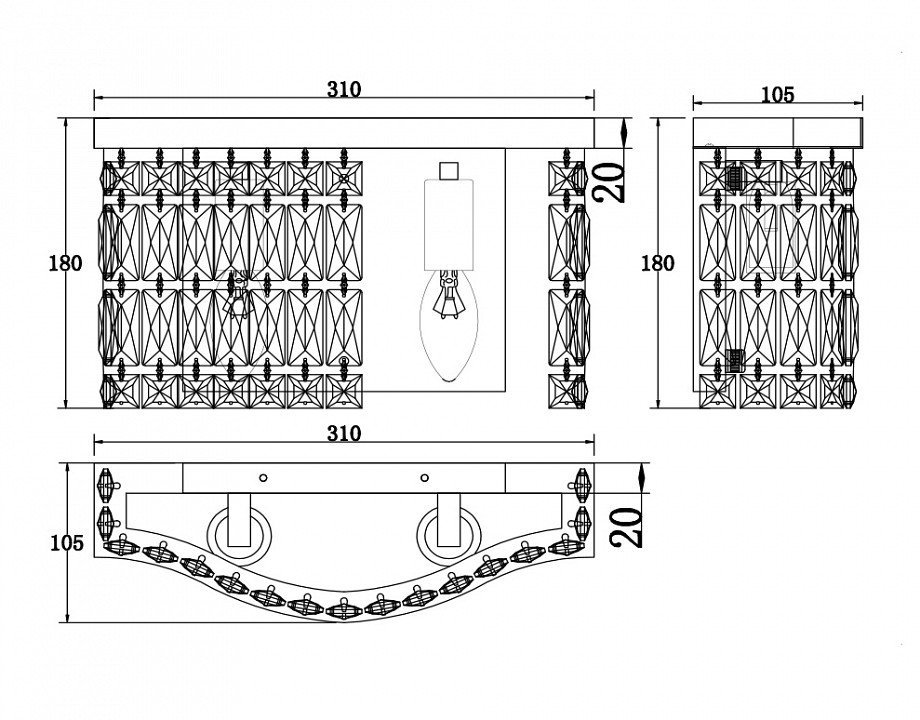 Общая форма для Бра и Настенные светильников с любым количеством рожковОбщий плафон / абажур