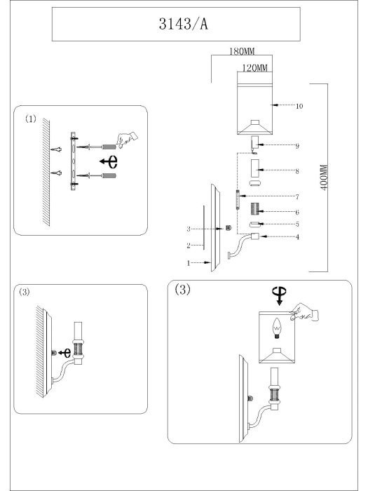 Общая форма для Бра и Настенные светильников с любым количеством рожковОбщий плафон / абажур