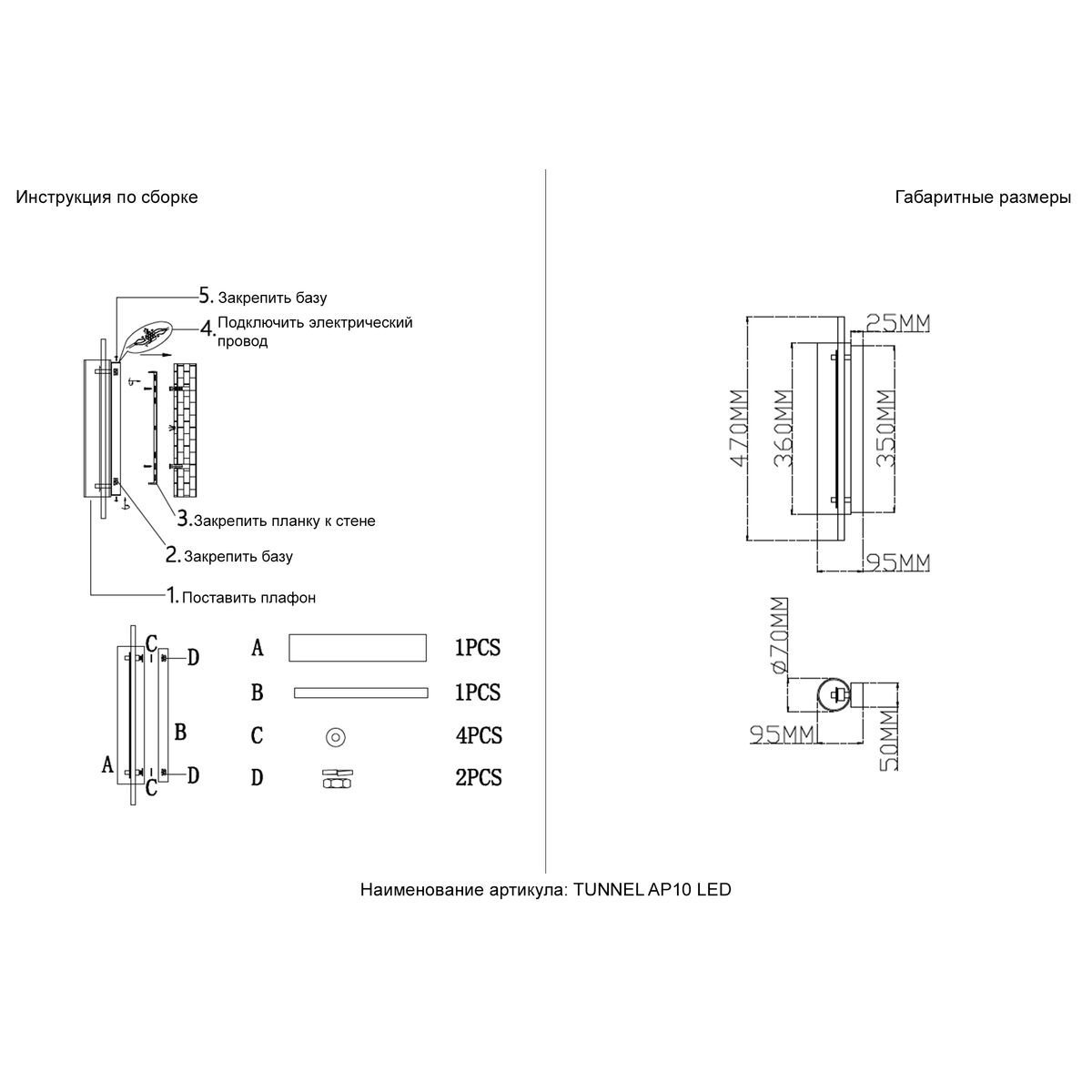 Артикул Tunnel AP10 Led Brass
