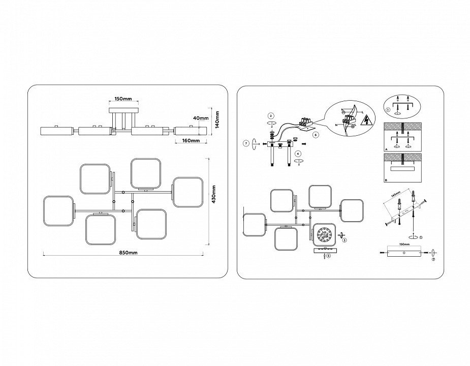 Точная форма - Несколько плафонов (Для подвесных люстр, потолочных люстр и подвесных светильников)Плафоны симметрично вдоль горизонтальной оси