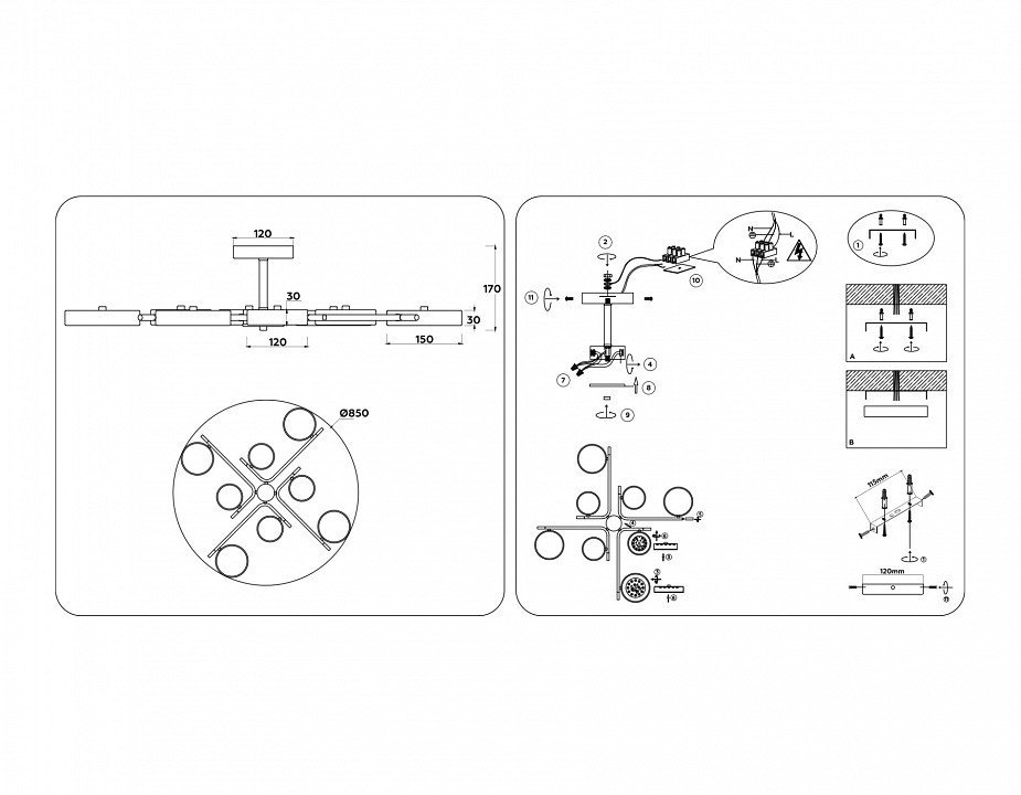Основная форма светильника (Для подвесных люстр, потолочных люстр и подвесных светильников)Несколько плафонов