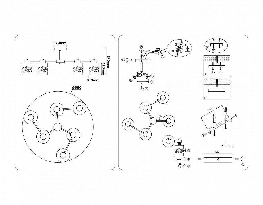 Основная форма светильника (Для подвесных люстр, потолочных люстр и подвесных светильников)Несколько плафонов
