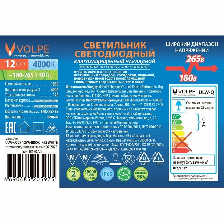 Станьте первым, кто оставит отзыв о товаре Накладной светильник Uniel ULW UL-00013186