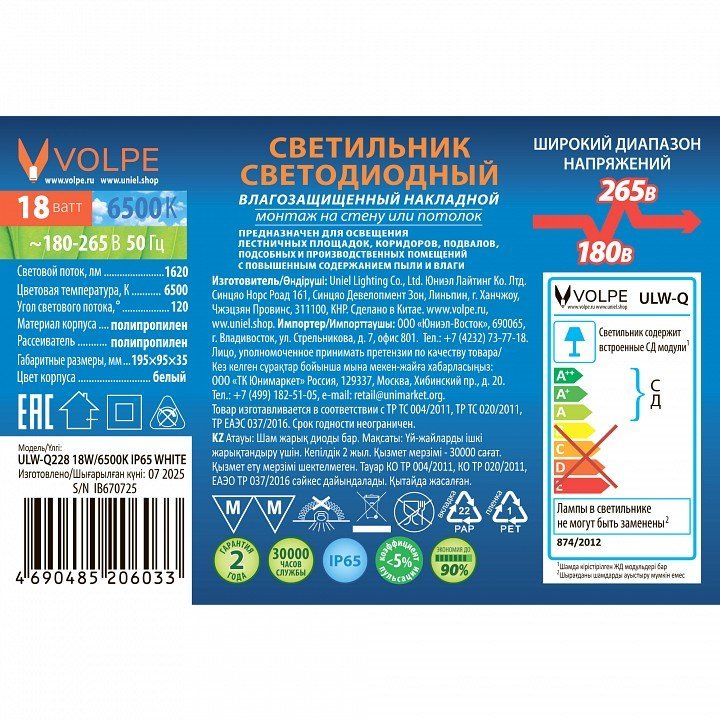 Станьте первым, кто оставит отзыв о товаре Накладной светильник Uniel ULW UL-00013189