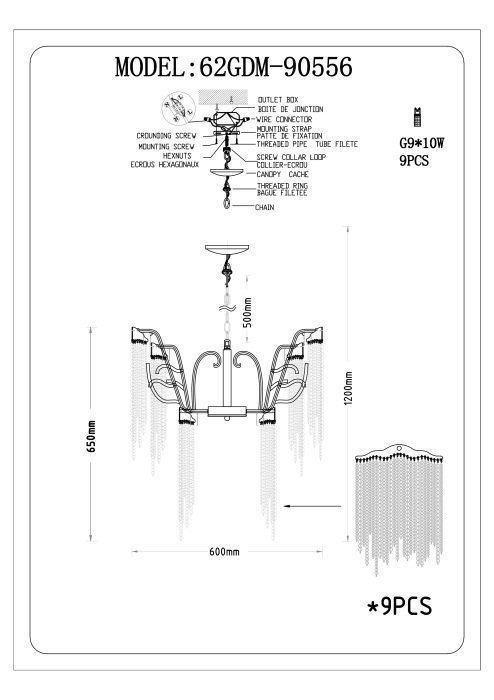 Точная форма - Один плафон / абажур (Для подвесных люстр, потолочных люстр и подвесных светильников)Из подвесок