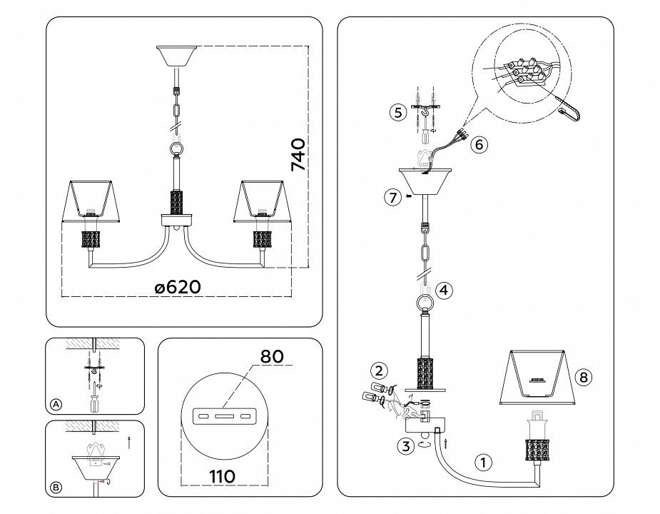 Основная форма светильника (Для подвесных люстр, потолочных люстр и подвесных светильников)Несколько плафонов