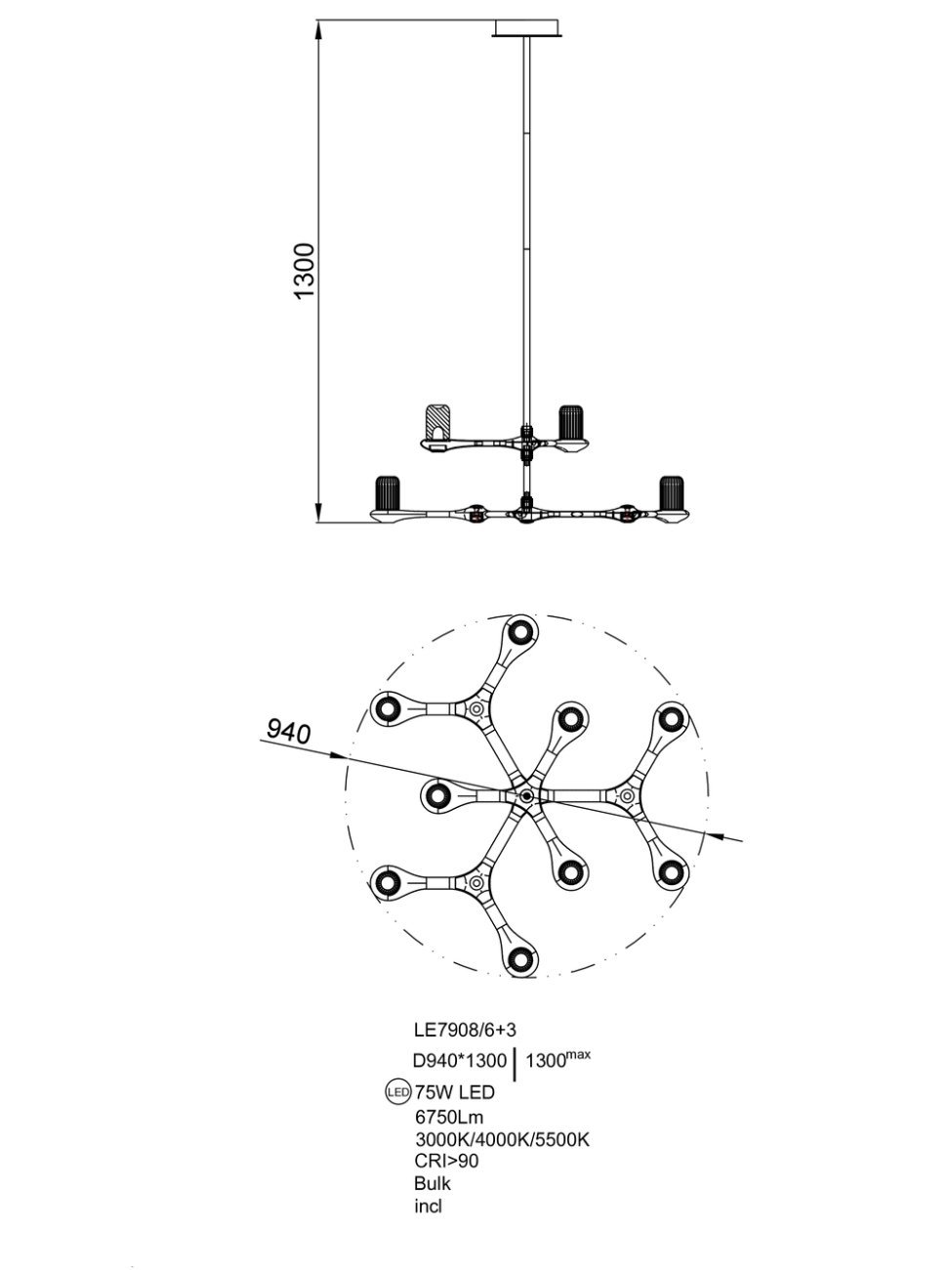 Подвесная люстра Barbara LE7908/6+3 Gold