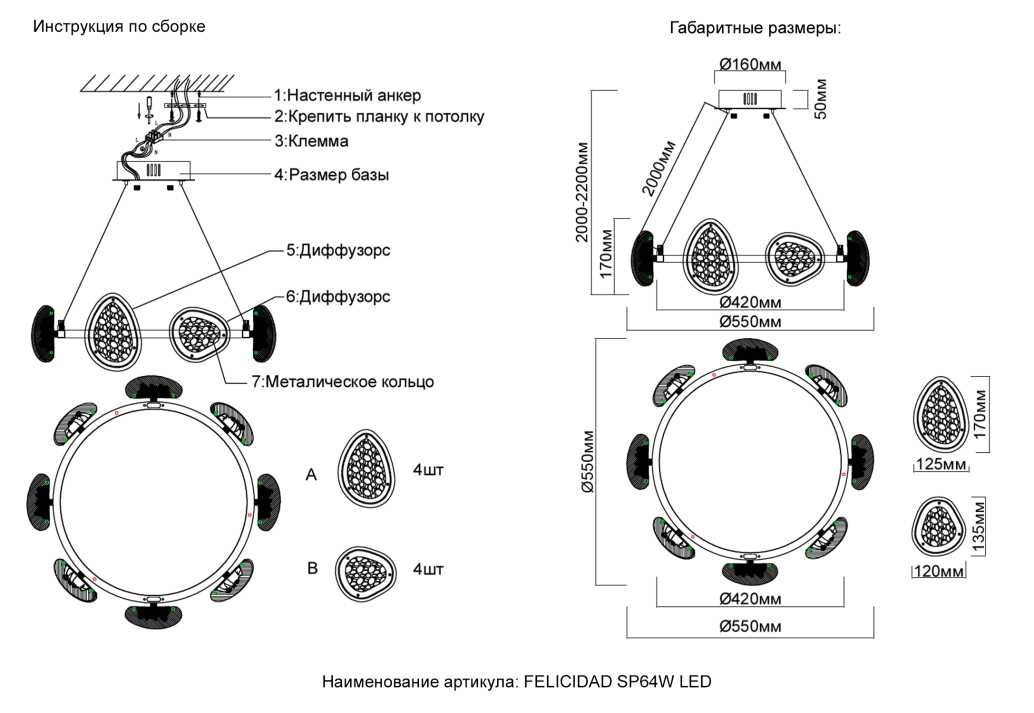 Основная форма светильника (Для подвесных люстр, потолочных люстр и подвесных светильников)Несколько плафонов