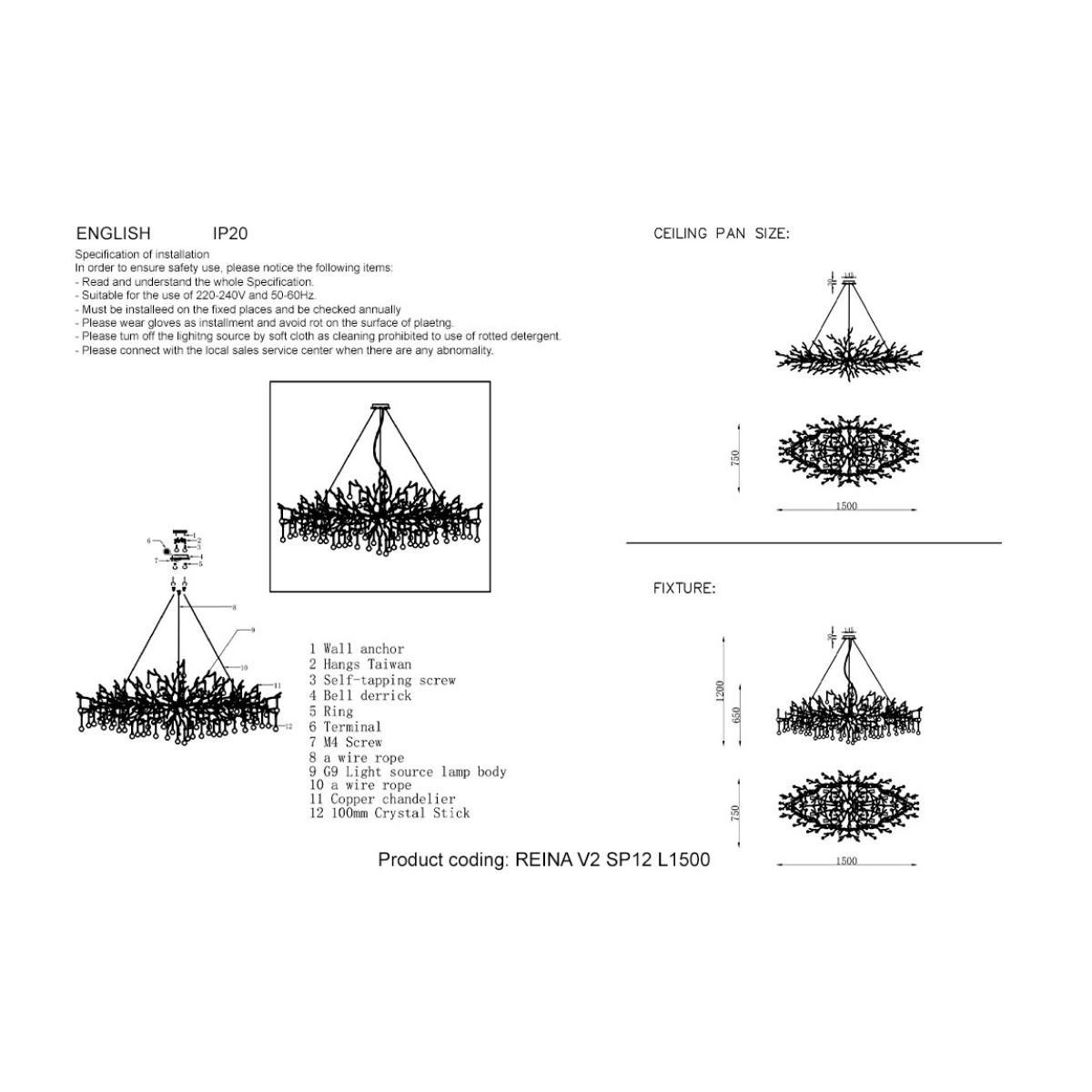 Станьте первым, кто оставит отзыв о товаре Подвесная люстра Crystal Lux REINA V2 SP12 L1500 SILVER PATINA