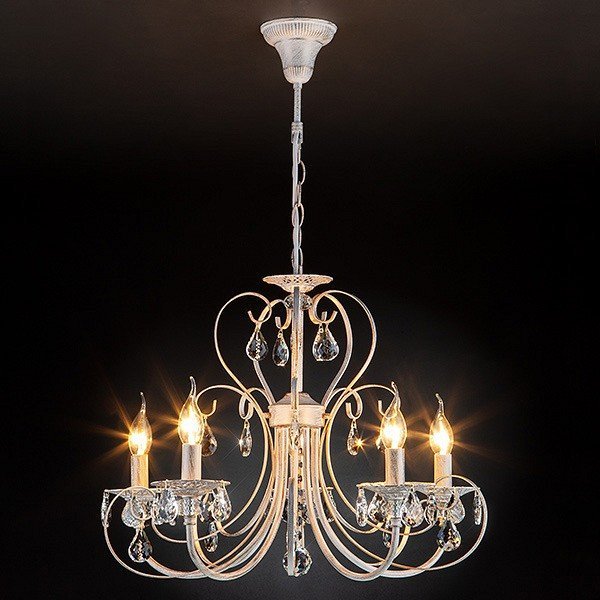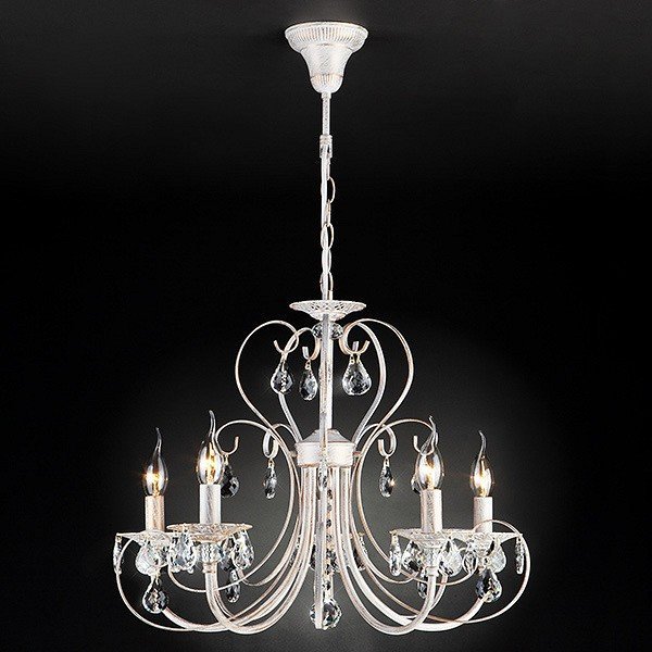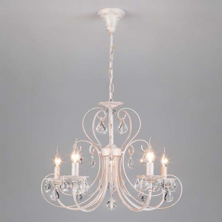 Станьте первым, кто оставит отзыв о товаре Подвесная люстра Eurosvet 3305/5 белый с золотом/прозрачный хрусталь Strotskis