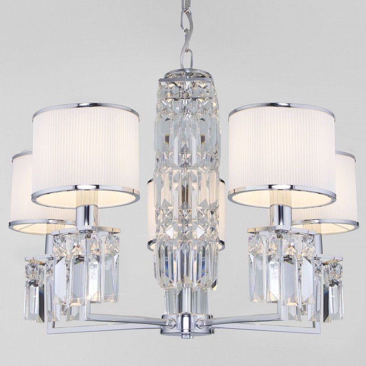 Подвесная люстра Eurosvet Zaffiro 10099/5 хром/прозрачный хрусталь Strotskis (новый абажур)