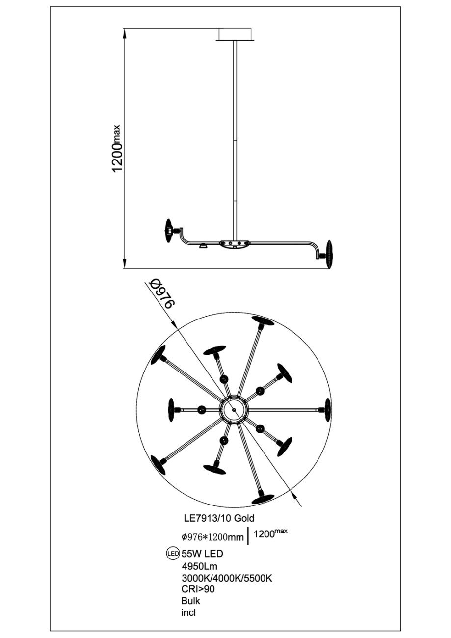 Подвесная люстра Iris LE7913/10G Gold