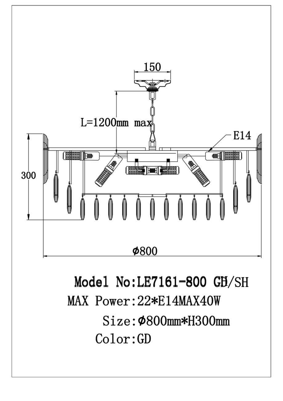 Станьте первым, кто оставит отзыв о товаре Подвесная люстра Jacqueline LE7161/800 GD/SH
