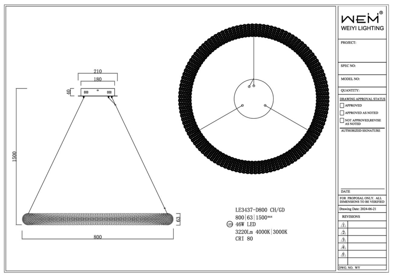 Подвесная люстра Juliana LE3437-D800 GD