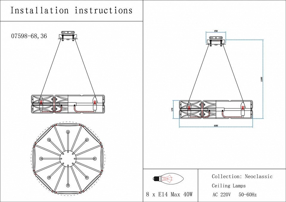 Тип светильникаПодвесная люстра