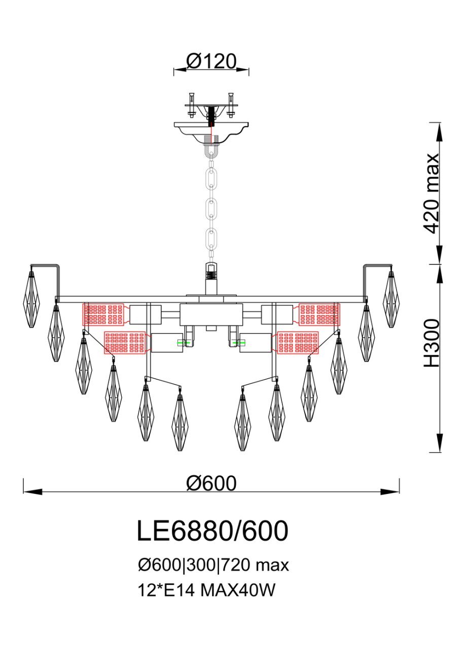 Подвесная люстра Melanie LE6880/600 GD