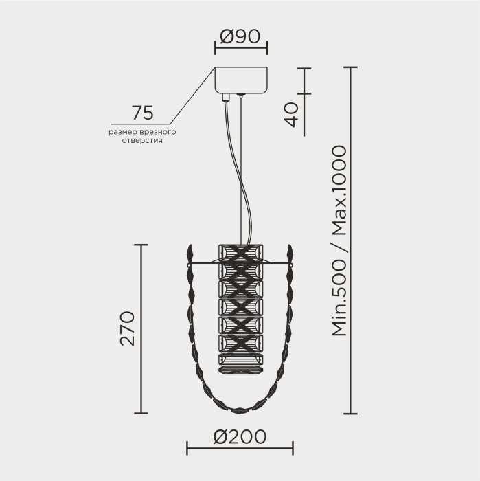 Длина подвеса, мм1000
