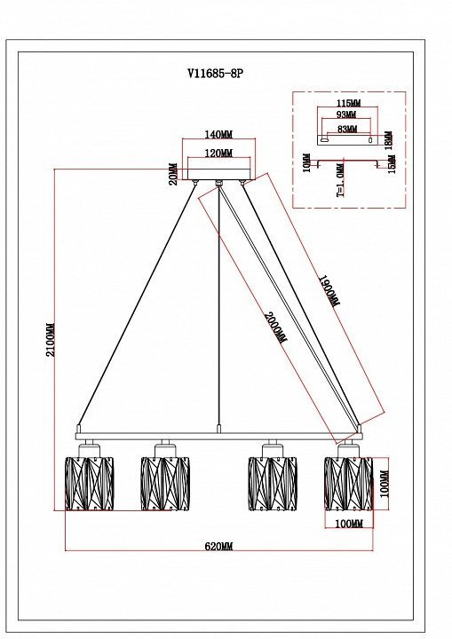Длина подвеса, мм1800