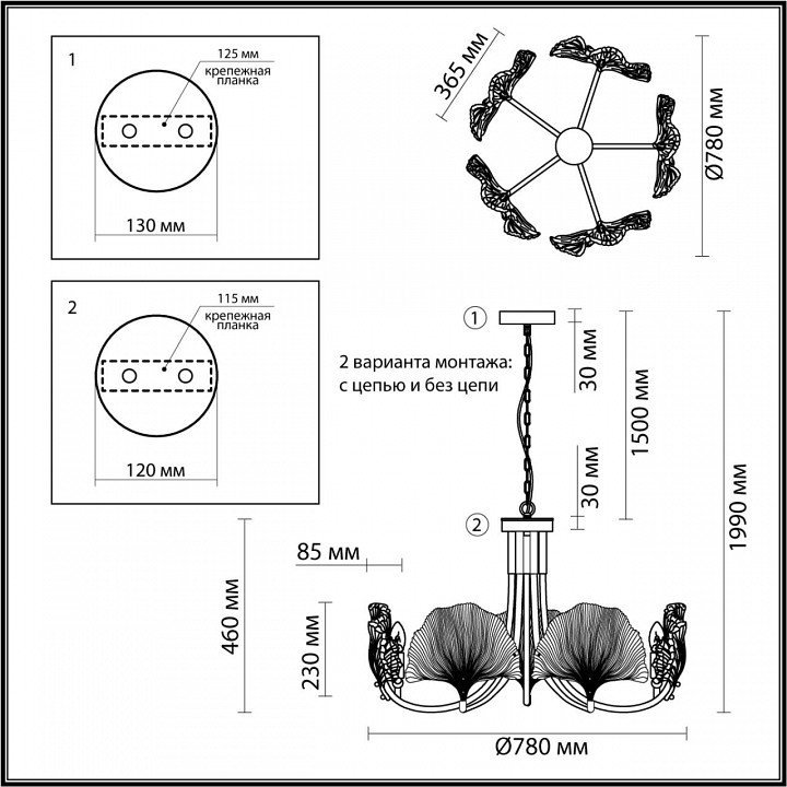 Основная форма светильника (Для подвесных люстр, потолочных люстр и подвесных светильников)Несколько плафонов
