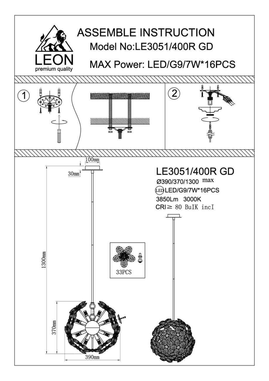 Станьте первым, кто оставит отзыв о товаре Подвесная люстра Thalia LE3051/400R GD