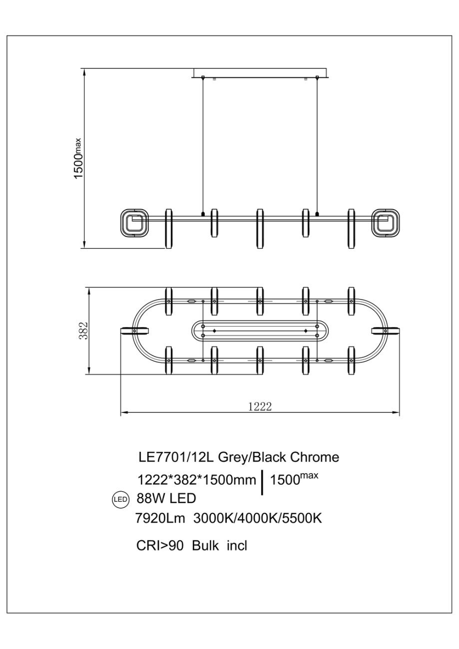 Подвесная люстра Theona LE7701/12L Grey/Black Chrome