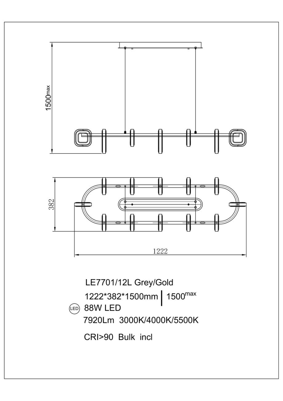 Подвесная люстра Theona LE7701/12L Grey/Gold