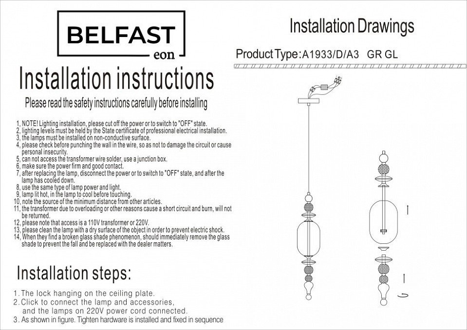 Станьте первым, кто оставит отзыв о товаре Подвесной светильник Belfast Herbison A1933-D-A3 GR GL