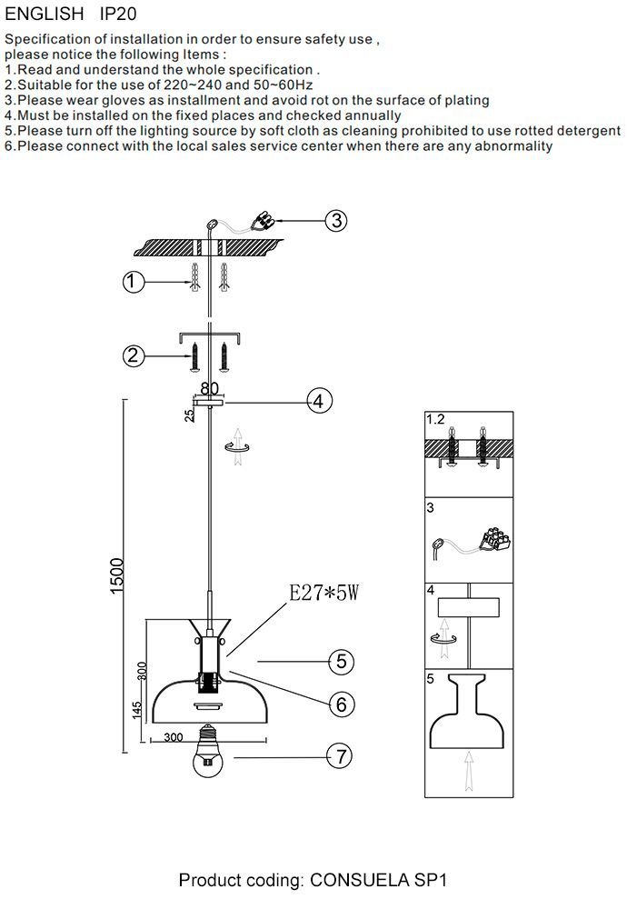 Длина подвеса, мм1200