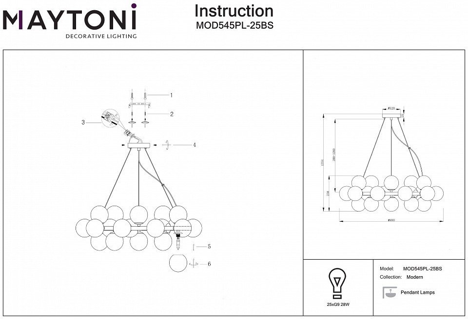 Станьте первым, кто оставит отзыв о товаре Подвесной светильник Maytoni Dallas MOD545PL-25BS