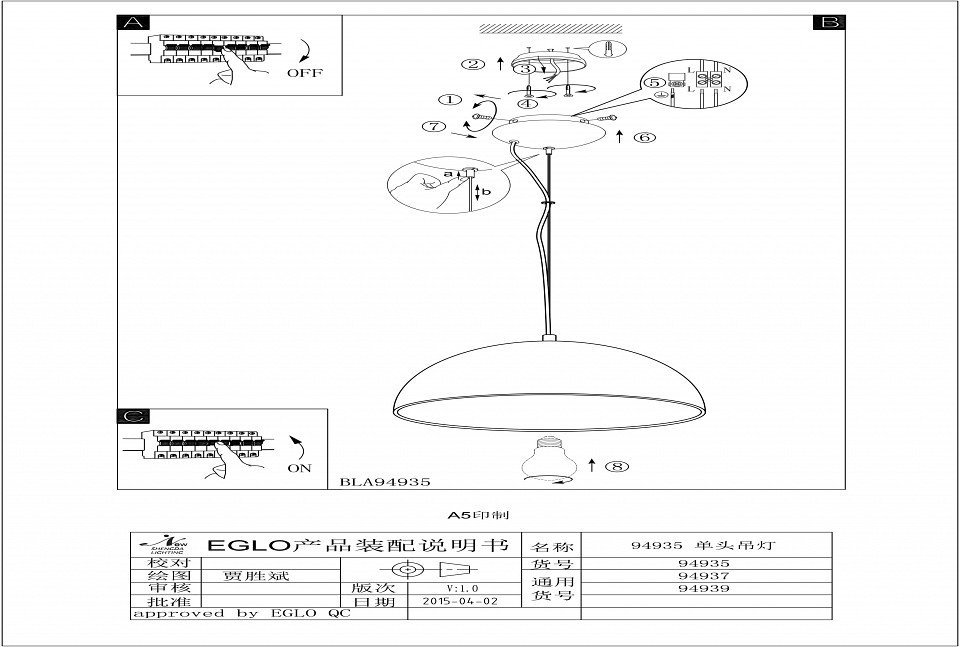 Подвесной светильник Eglo Gaetano 1 94935