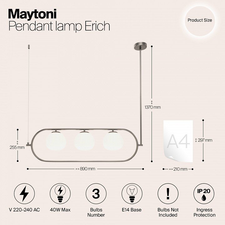 Станьте первым, кто оставит отзыв о товаре Подвесной светильник Maytoni Erich MOD221PL-03N