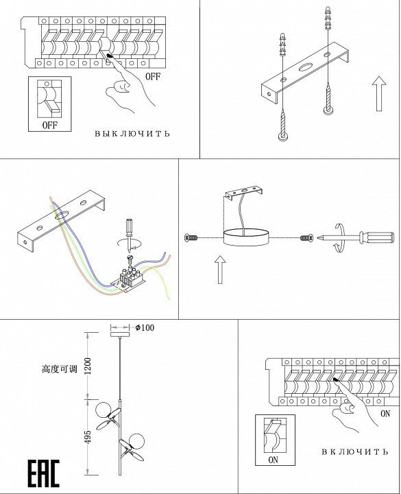 Длина подвеса, мм1200