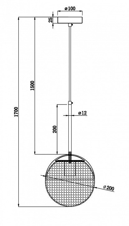 Длина подвеса, мм1500