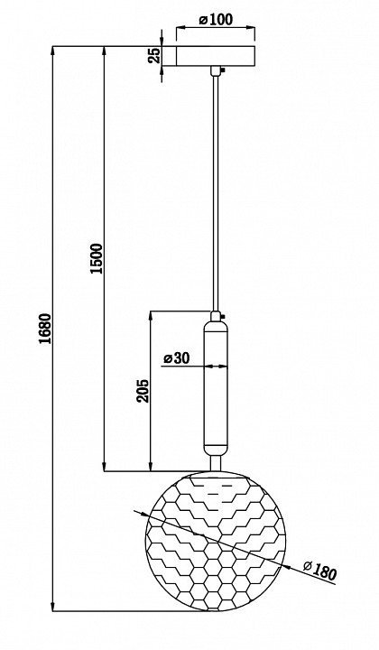 Длина подвеса, мм1500