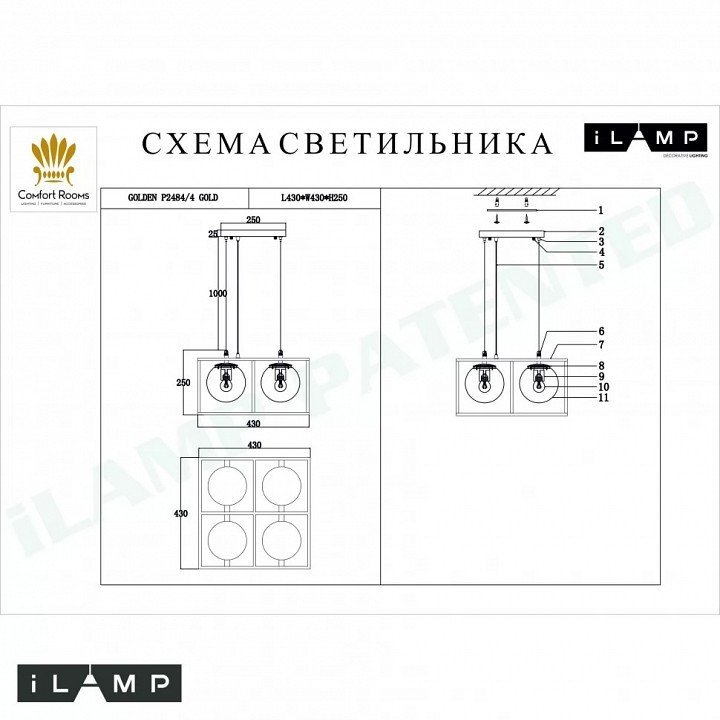 Станьте первым, кто оставит отзыв о товаре Подвесной светильник iLamp Golden P2484-4 GOLD