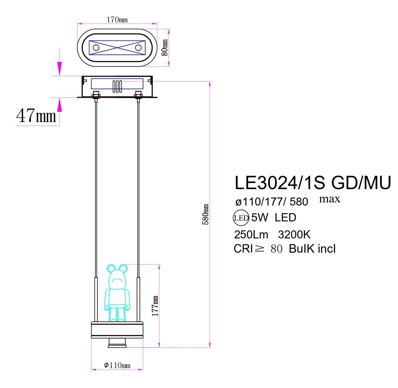 Подвесной светильник Joli LE3024/1S GD/MU