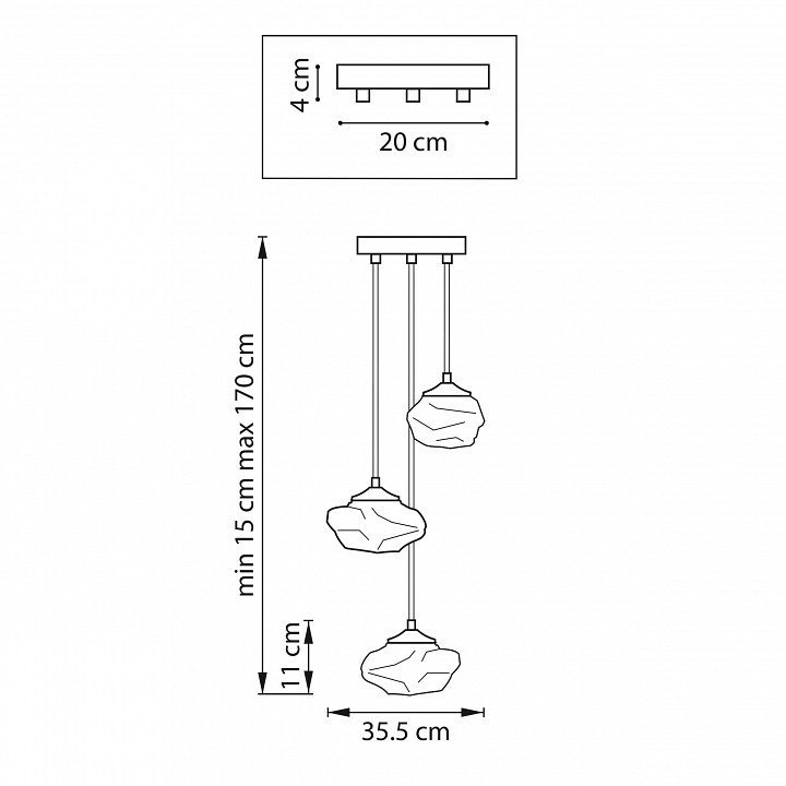 Точная форма - Несколько плафонов (Для подвесных люстр, потолочных люстр и подвесных светильников)Каскад в одну комнату