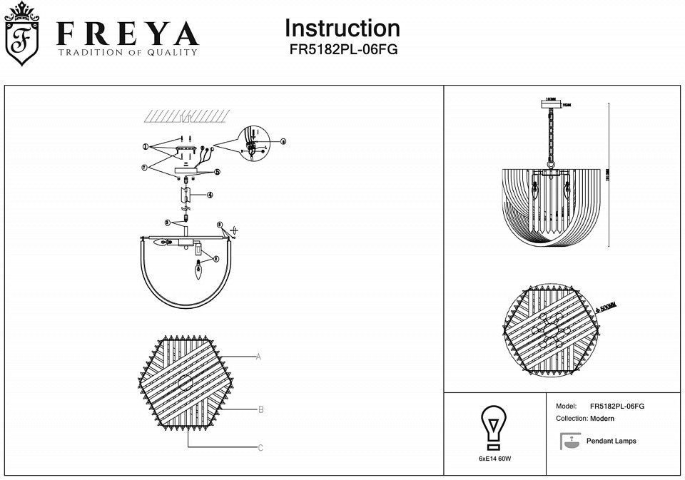 Станьте первым, кто оставит отзыв о товаре Подвесной светильник Freya Onda FR5182PL-06FG