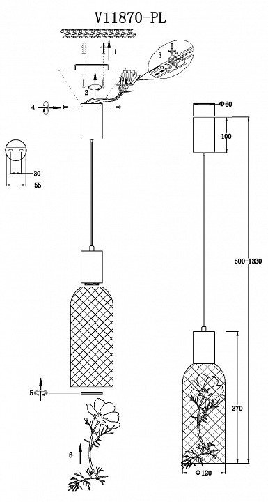 Длина подвеса, мм1330