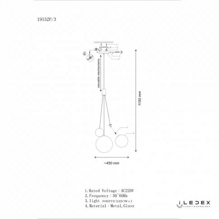 Подвесной светильник iLedex Selfie 19152P/3-6W-3000K CP
